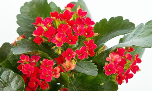 Kalanchoe (kal-un-KOH-ee) has beautiful foliage with colorful, long lasting flowers. They enjoy bright light and a well-drained soil. They get leggy under low-light conditions and must not be over-watered. Like most succulents, kalanchoes are better able to handle dry conditions, opposed to wet conditions. Fertilize lightly in spring and summer, or when plant is actively growing.