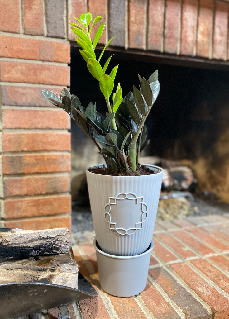 The dimensions of this planter are 7″ wide by 12″ high, which provides a capacity of about 1.5 gallons, making it a great fit for most houseplants! The elegant slope of the sidewalls hold the plant’s root ball in place when moving, transplanting, or dividing, and better yet, aids when bottom watering.